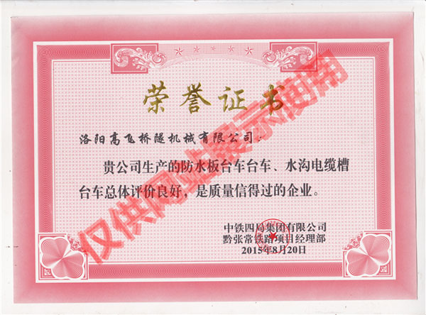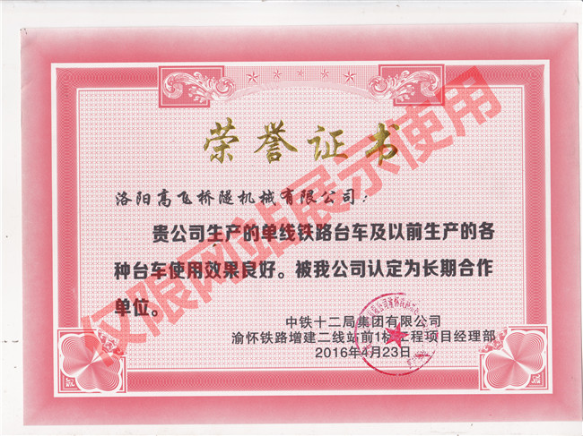 黔張常鐵路18局頒發(fā)證書