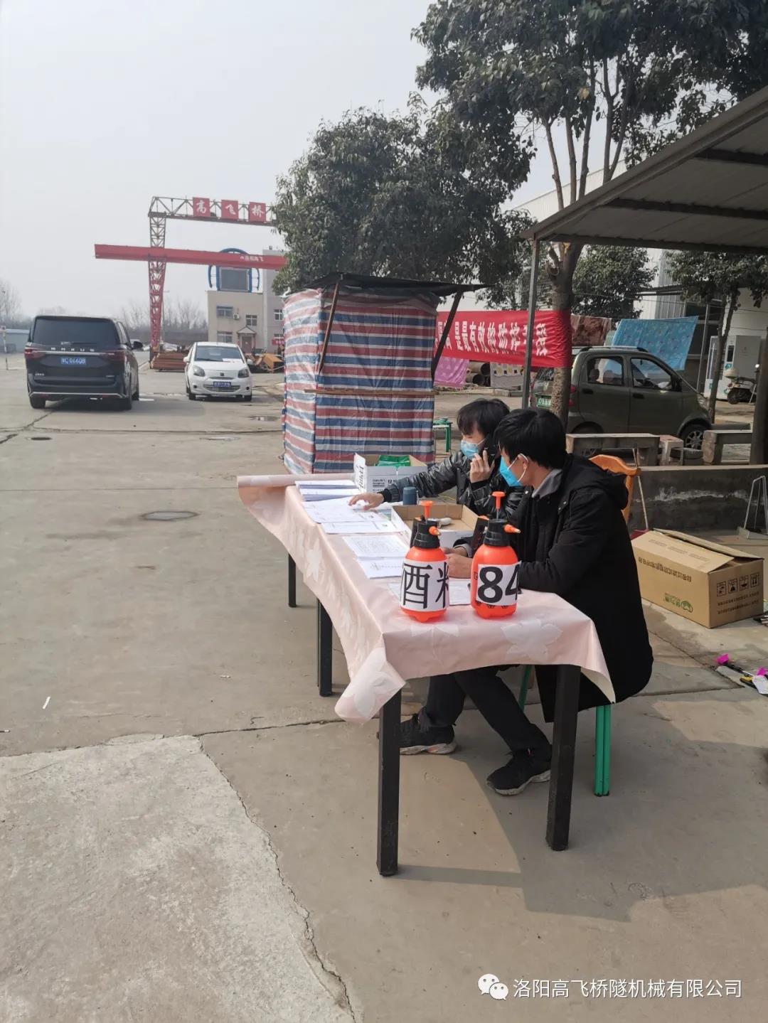 2月23日,在上級部門的現場驗收下,公司手續、物資等通過驗收,高飛橋隧會在上級部門的要求下,一五一十切實做好復工前摸排登記,復工后 “六個必須”, “五個到位”, “四個堅持”, 嚴格實行零報告制度,嚴明各項紀律規定,加大宣傳引導,有效預防等等。堅決做好廠區設施設備安全檢查,一日三次消毒,兩次體溫檢測、進入人員、車間等檢測登記,吃飯不扎堆、不聚集,宿舍通風、不通鋪,重點位置重點消毒等,并且每日向上級匯報和報送公司情況以及新增復工人員花名冊和員工健康證明材料,做好公司應盡職責和義務,切實保障員工身心健康。