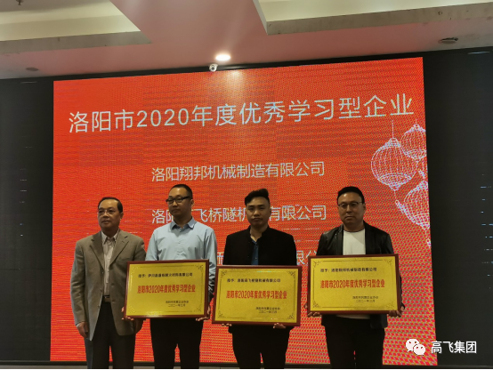再次祝賀洛陽市民營企業協會2020年度工作會暨表彰大會圓滿成功!祝賀高飛橋隧機械有限公司獲得“洛陽市2020年度youxiu學習型企業”榮譽稱號!